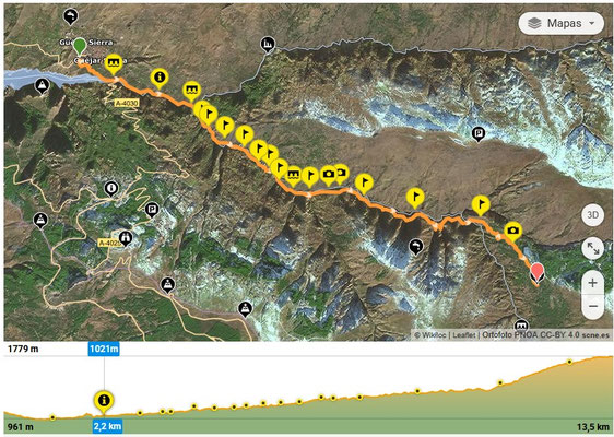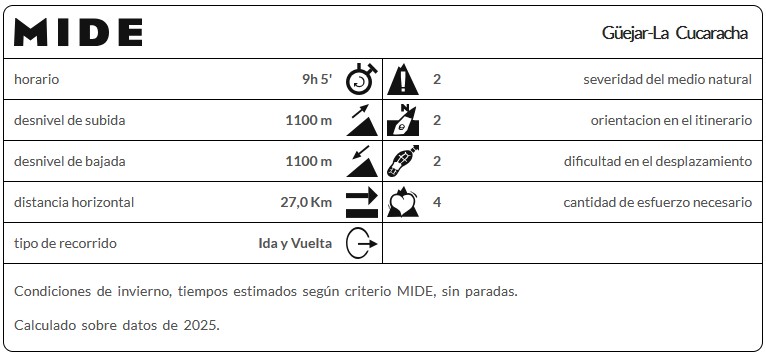 Cruzaremos al otro lado del río Genil para comenzar el pequeño tramo de mayor pendiente, la llamada “Vereda de los Presidiarios” que nos llevará hasta el refugio de la Cucaracha, actualmente cerrado por reformas, con impresionantes vistas de los tres miles de Sierra Nevada. Al regreso desharemos el camino andado.